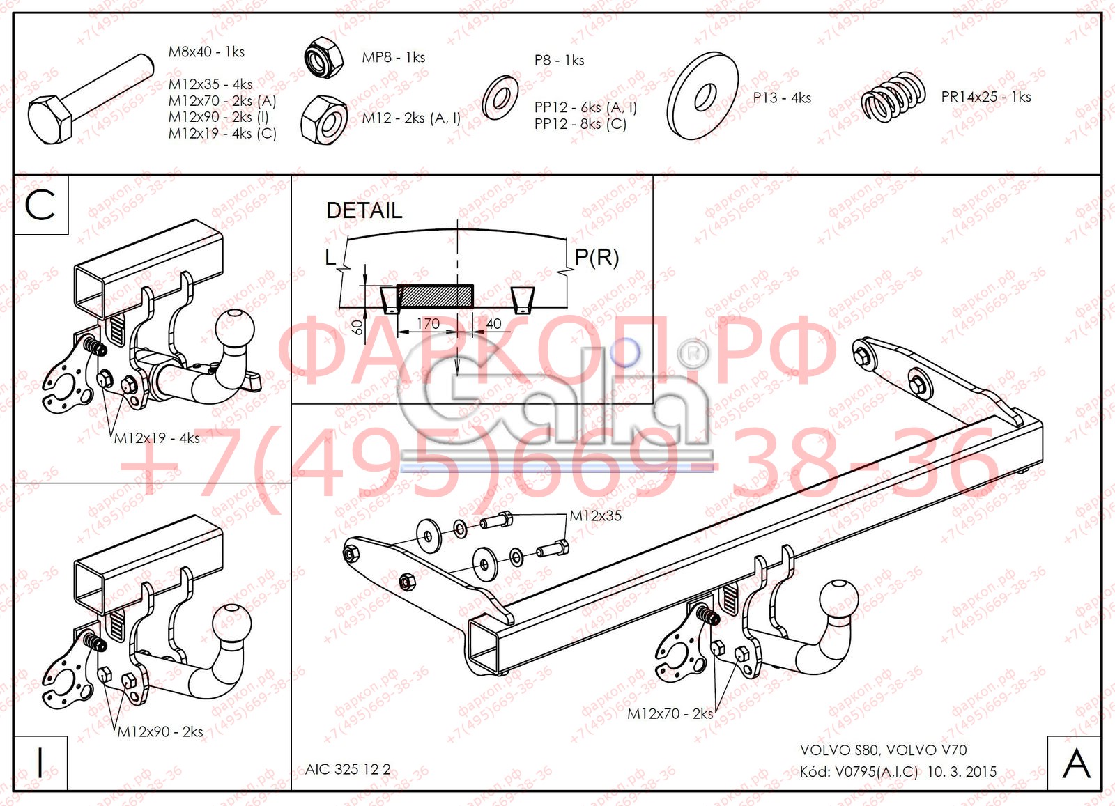 Фаркоп Galia оцинкованный для Volvo S80 II 2006-2010. Быстросъемный крюк. Артикул V079C